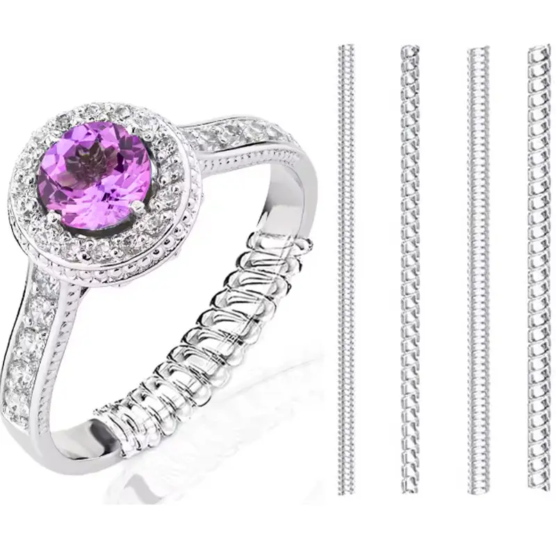 Hot Sale Adjustable Transparent Spiral Silicone Tightener Spacer Invisible Jewelry Guard for Ring Size Adjuste···